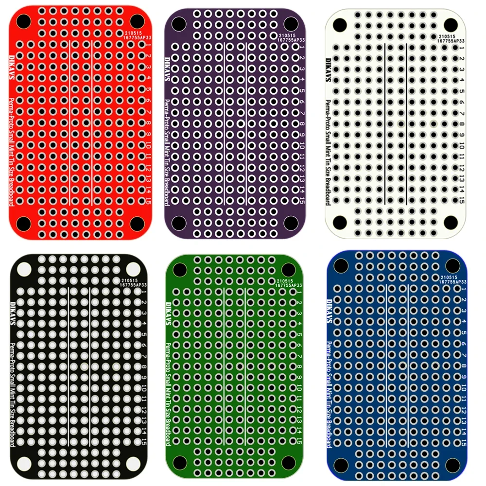Small Size PCB Prototype Board Solderable Breadboard for Arduino Electronics Compatible Soldering Projects (6 Pack, Multicolor)