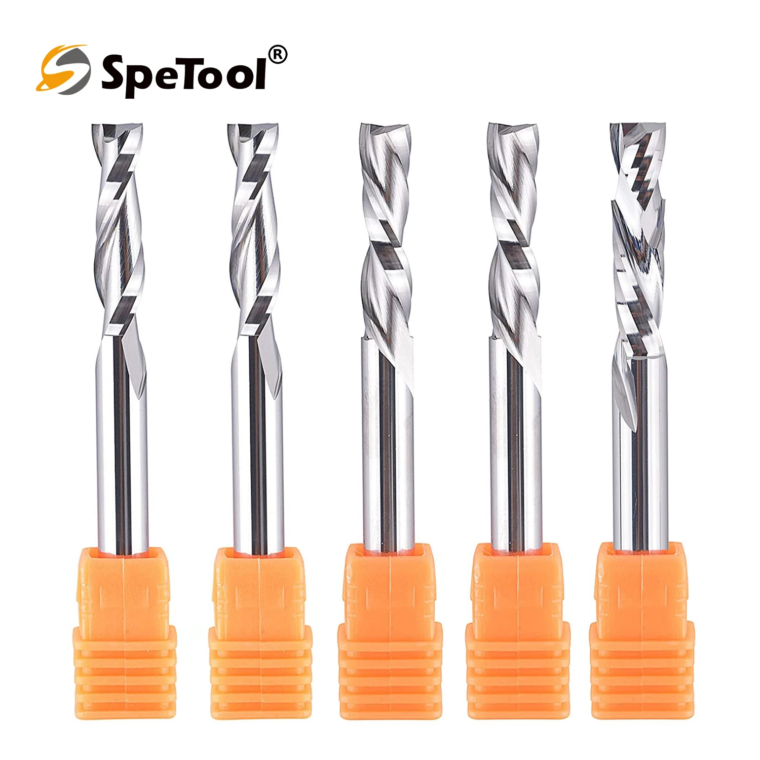 SpeTool 5PCS Spiral Router Bits Solid Carbide CNC Up Down Compression Router Bit Set for Wood Slot Mortise Cut Carving Engraving