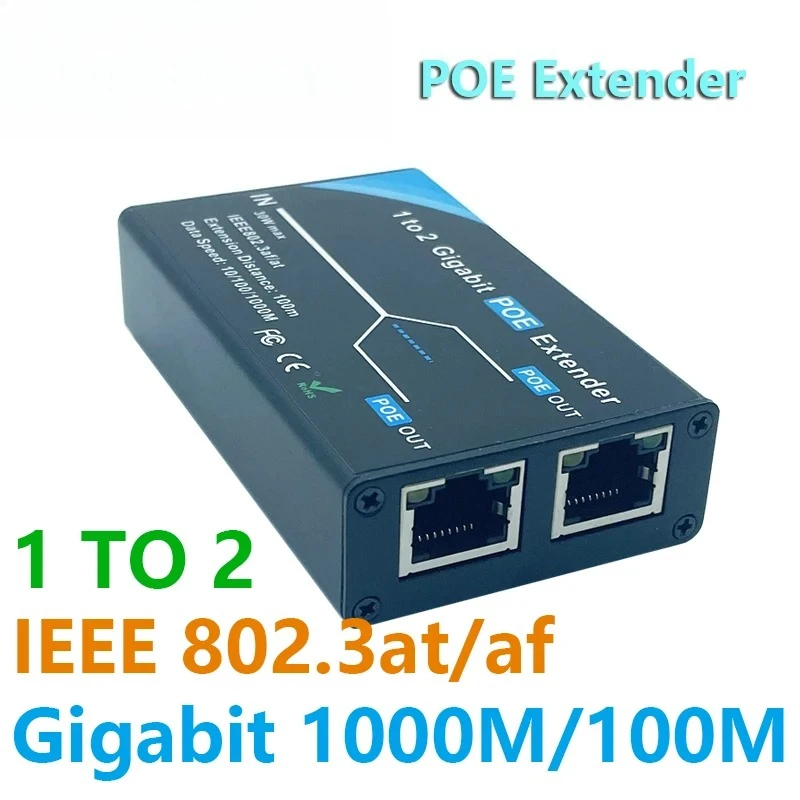 2 Port Gigabit PoE Extender, IEEE 802.3af/at Standard, 100M Network Extension, for IP Cameras & Access Points
