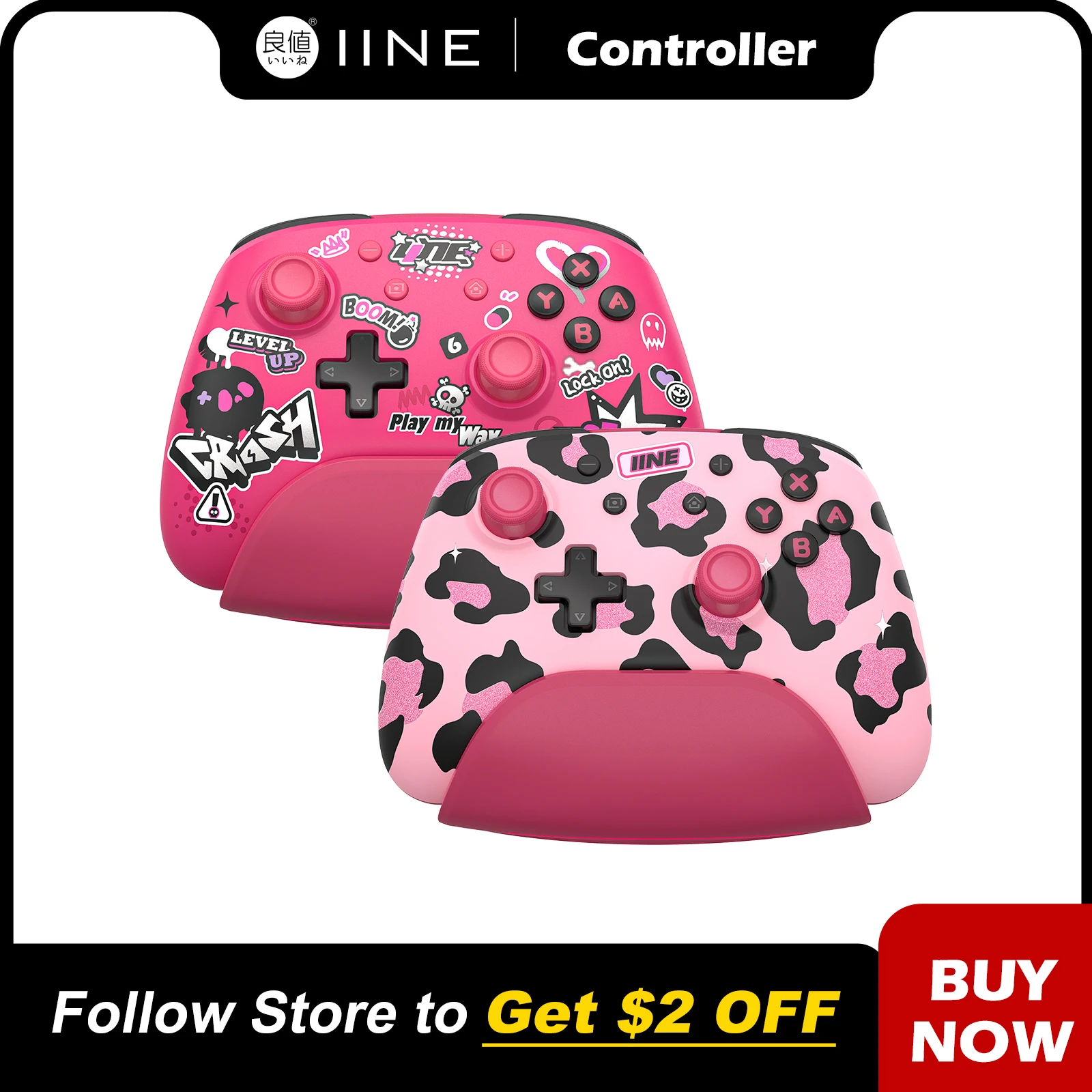 IINE Pink Wireless Controller with Charging Dock for PC/Laptop/Switch/Steam/iPad, support NFC Amiibo Auto-Fire Macro  Read more