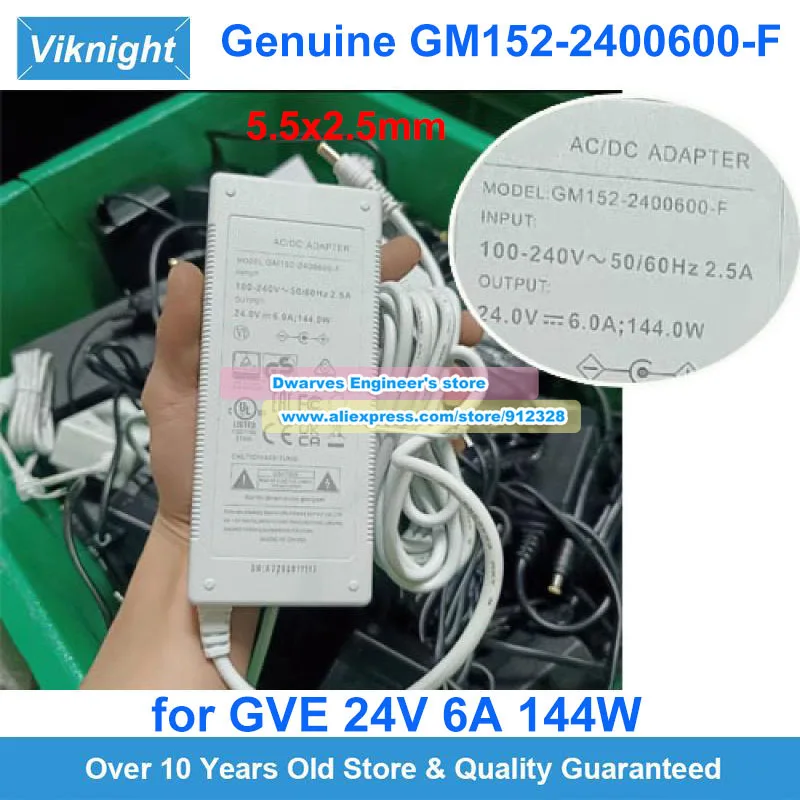 Genuine White GVE GM152-2400600-F AC Adapter 24V 6A 144W Power Supply 5.5x2.5mm