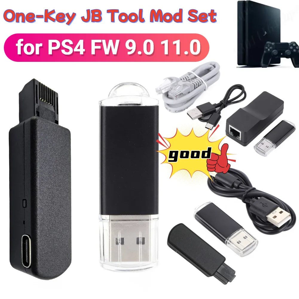 One-Key JB Tool Mod Set USB Dongle with Ethernet Type-C Cable Kit JB USB Adapter for PS4/PS4 Pro/PS4 Slim FW 9.0-11.0 System