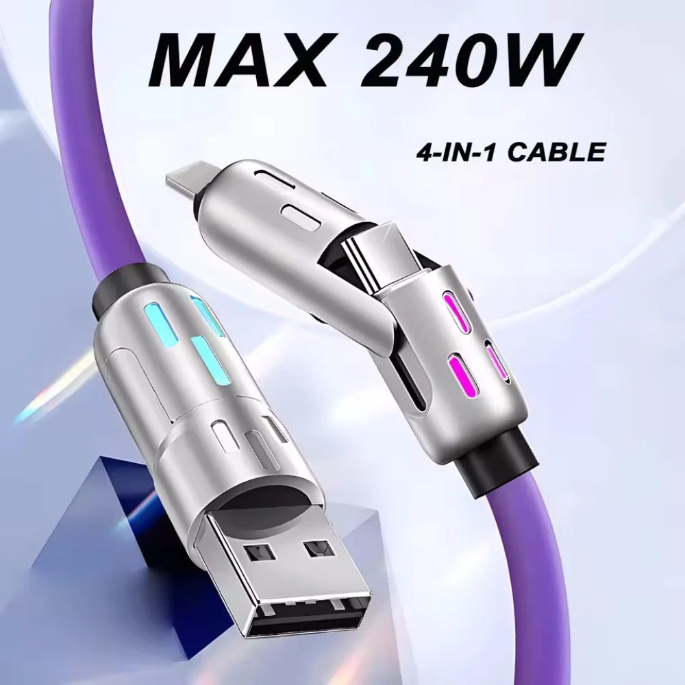 4 in 1 Multi Connectors Charger Rotating Elbow USB to Type-C 1.5m Mobile Phone 240W Fast Charging Silicone Cable Data Transfer