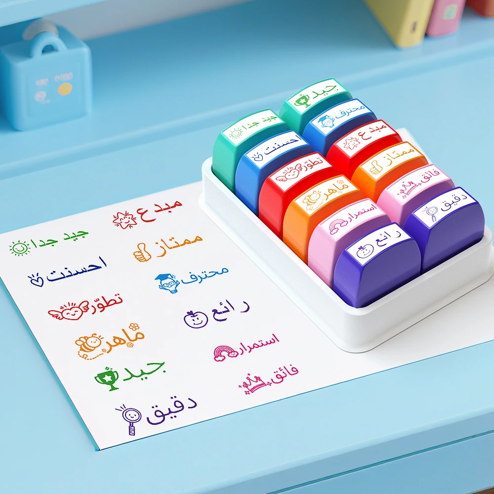 8-layer colorful Arabic teacher stamp- encouraging classroom grading stamps, self-inking, grading incentives, teaching aids