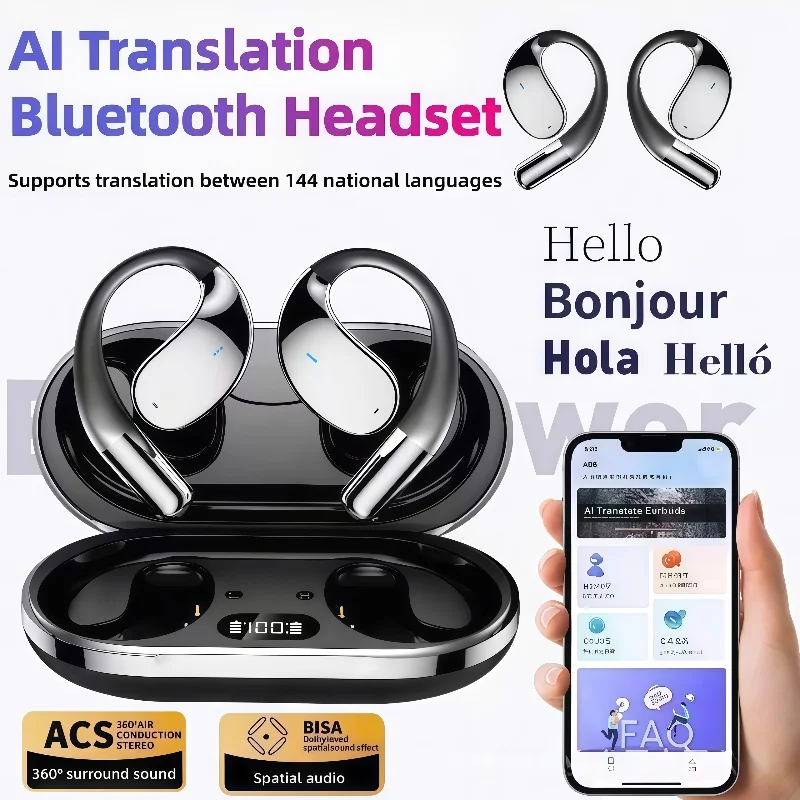 Q39 Wireless AI Real-Time Translation Headphones 140 Languages Instant Voice Translator Earbuds Hook Noise Cancelling Headphone