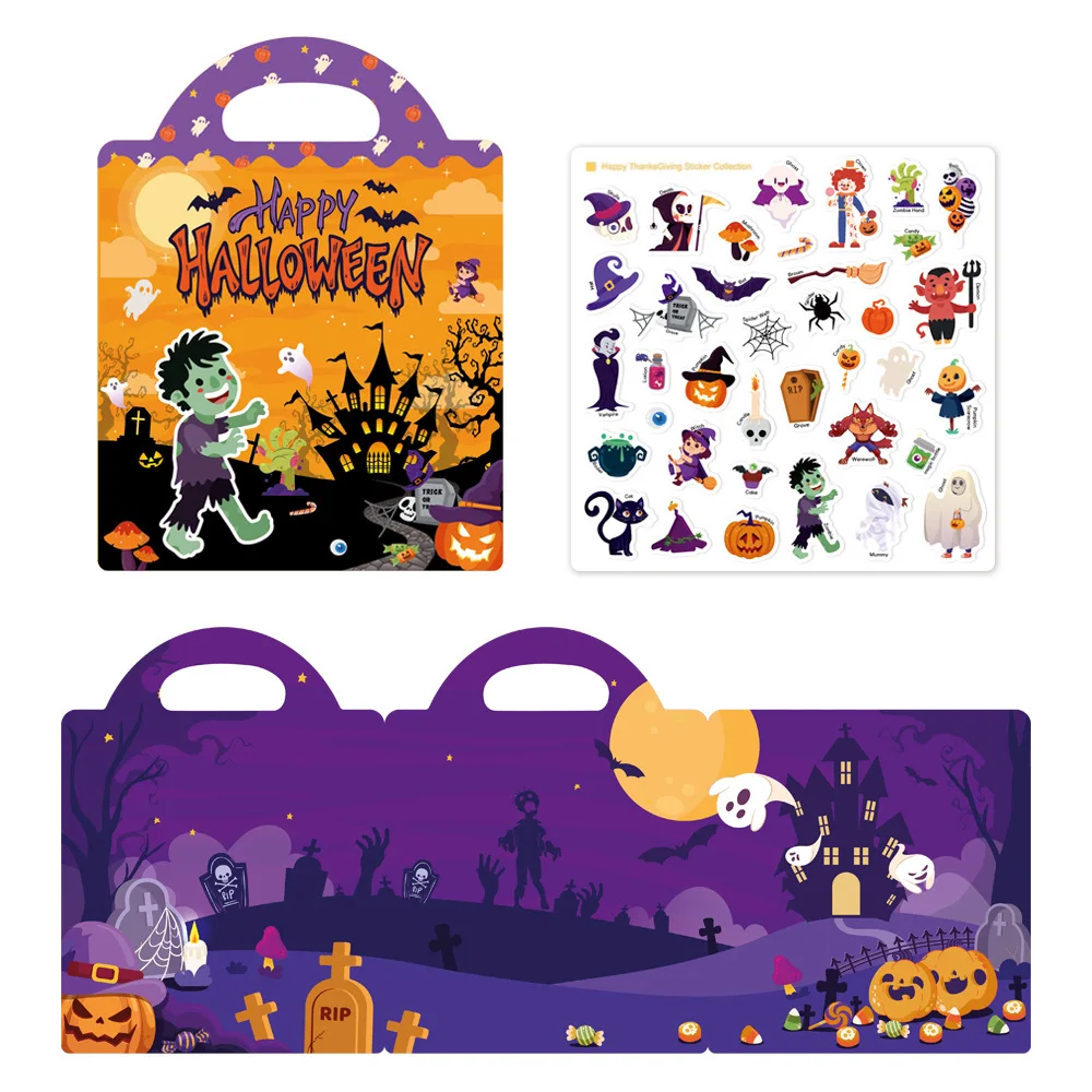 Toddler Educational Activity Book: Halloween & Christmas Themed Reusable Stickers, DIY Preschool Focus Training for Ages 3-6