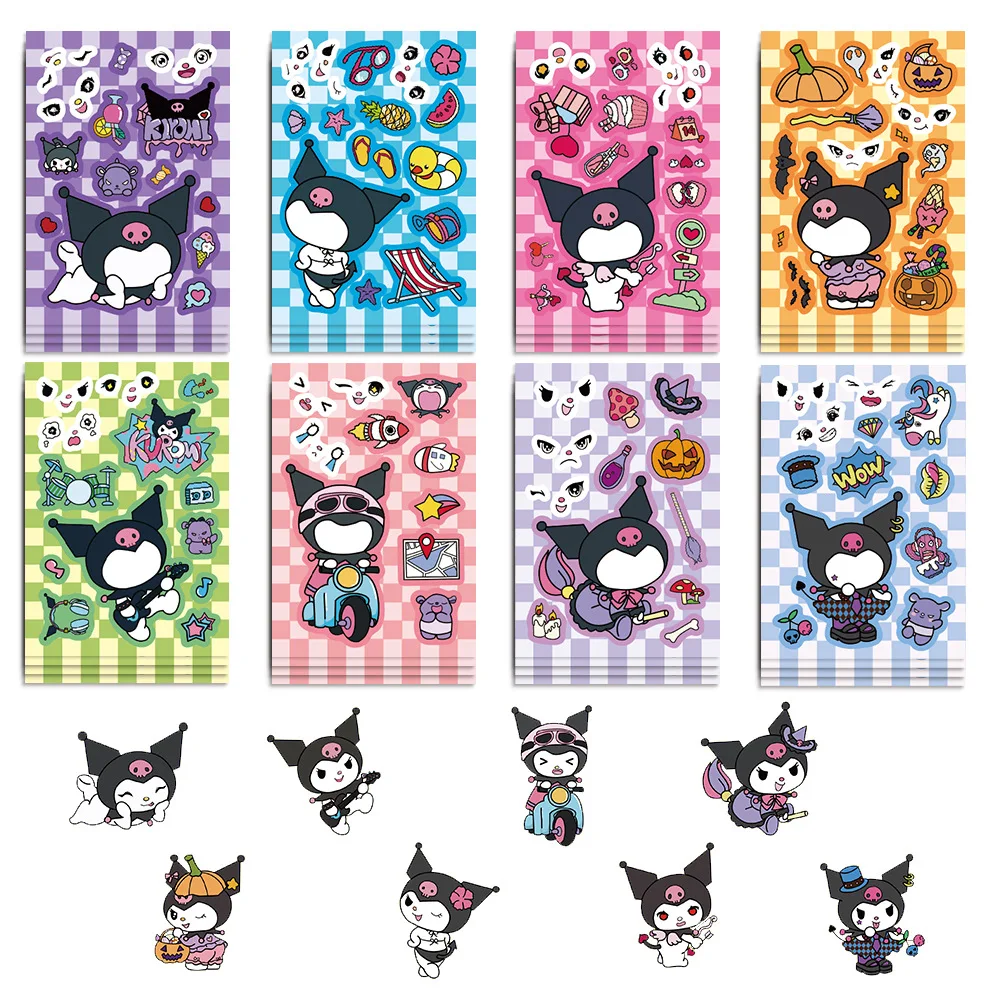 8Pcs Kuromi Puzzle Stickers Kawaii Cartoon Make A Face Sticker Assemble Educational Book Cute Decals