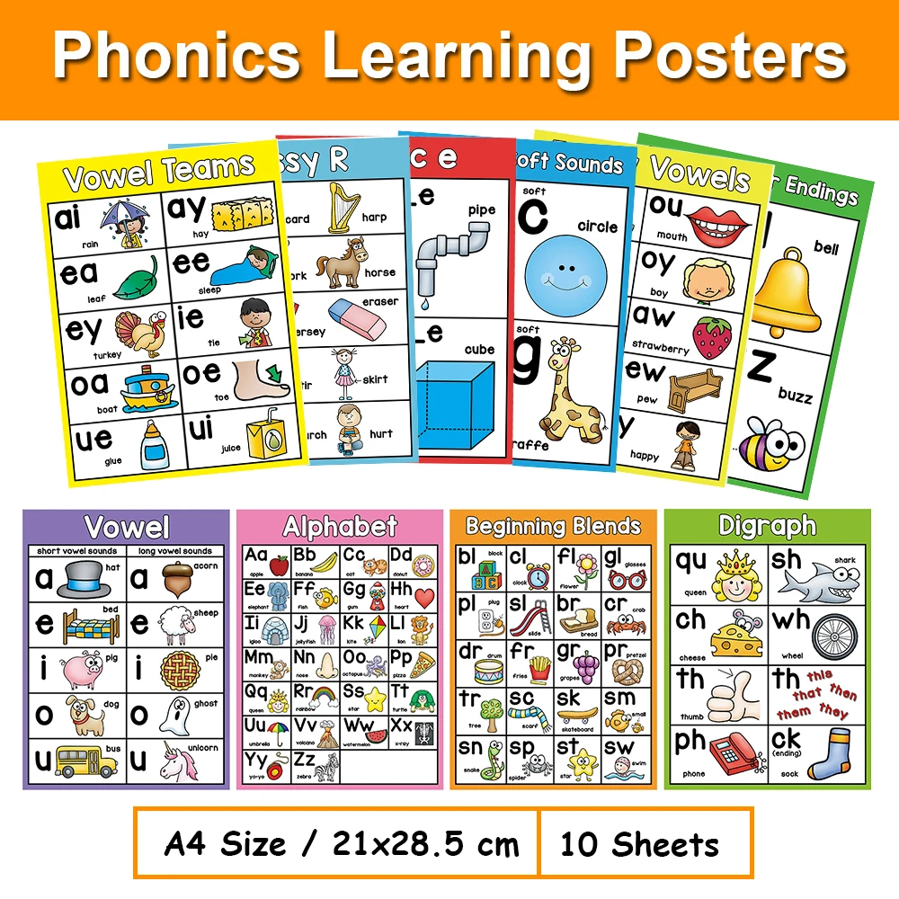 10Pcs Phonics Learning Posters Learning English Educational Chart Teacher Teaching Aids Montessori Learning Toys Classroom Decor  Read more