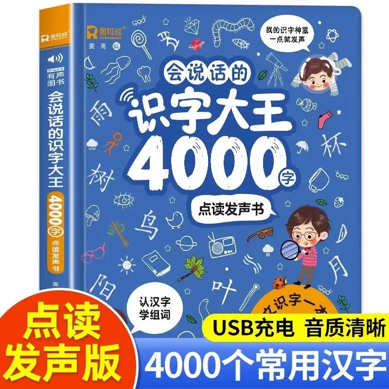 Interactive Chinese Literacy Sound Book with 4000 Words & Pinyin - Parent-Child Bonding Educational Toy for Kids 3-12, Rechargea