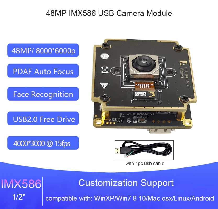 48MP IMX586 cmos USB2.0 Camera Module PDAF Auto Focus AF 30fps 8000*6000 Rolling Shutter Lightburn Webcam UVC Free Drive OTG Cam