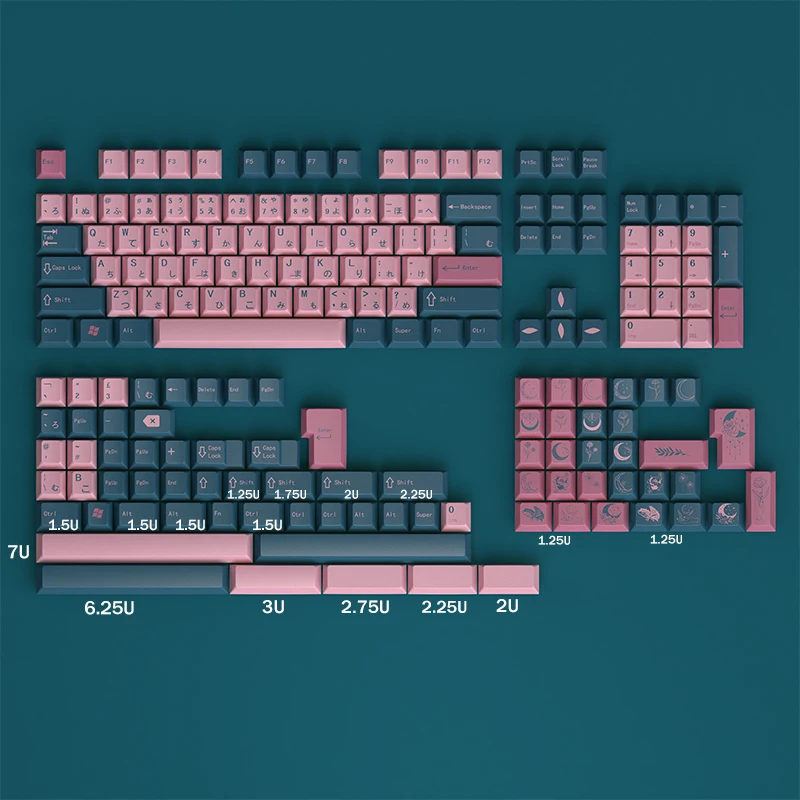 182 Keys Flower and Moon Keycaps Japanese English Cherry Profile PBT Dye Sublimation Keycap For MX Switch Mechanical Keyboard