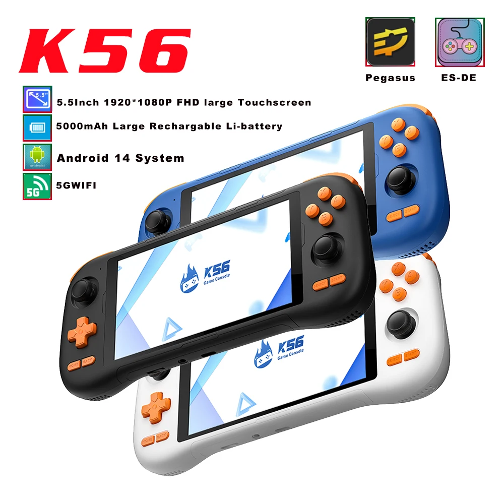 NEW Handheld Game Console K56 5.5'' Touch Screen 50 Emulators for PS1/PSP/DC/SS Android 14 5000mAh WIFI5 Retro Game Player  Read more