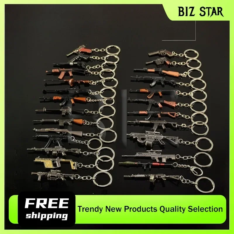 9cm/3.54in Hot Weapon Game Peripheral Barrett AKMT88 Sniper Rifle STG44 Metal Mini Keychain Models Ornaments Collections Display