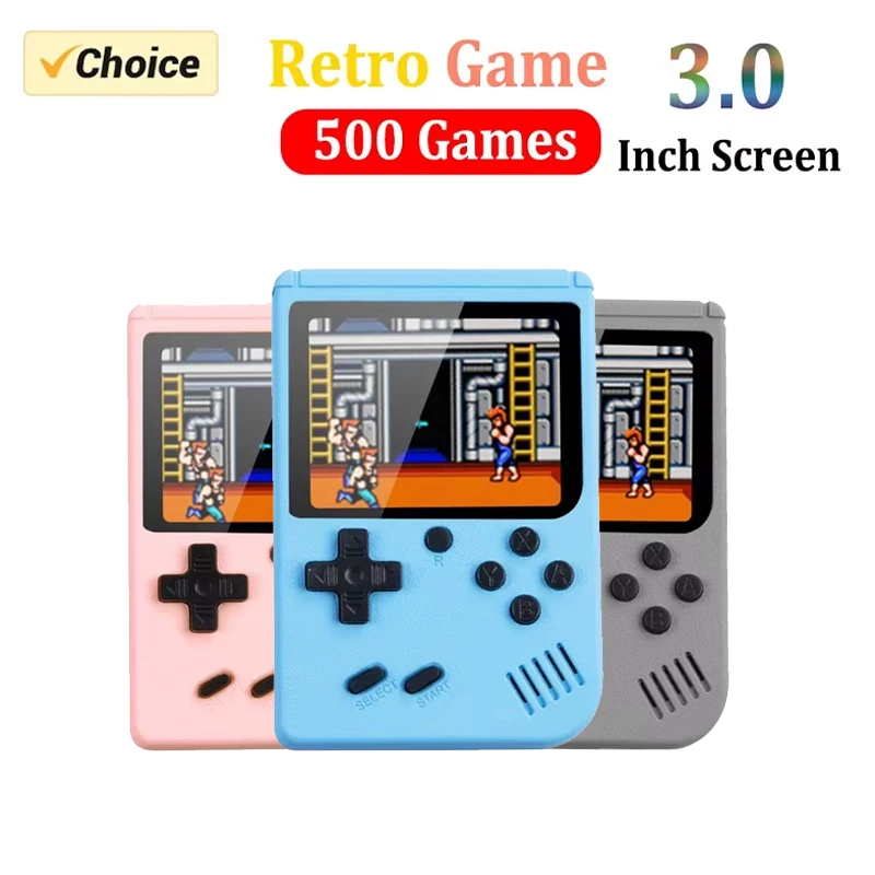 Built-in 500+ Classic Games 8-Bit 3.0 Inch Color LCD Arcade Retro Console for TV Video Game Handheld Player for Boy Kid Gift