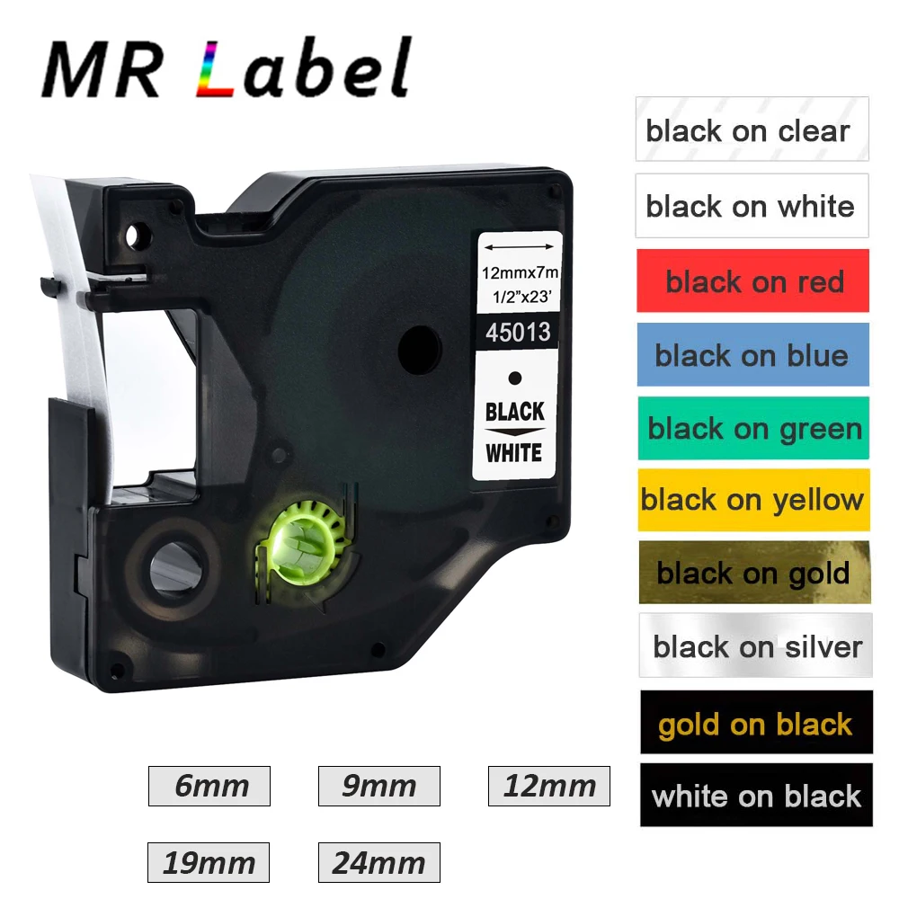 1pcs Compatible dymo D1 6/9/12/19/24mm 45010 45013 45018 40910 40913 43613 45023 45024 ribbon for labelmanager LM160 210D LM280
