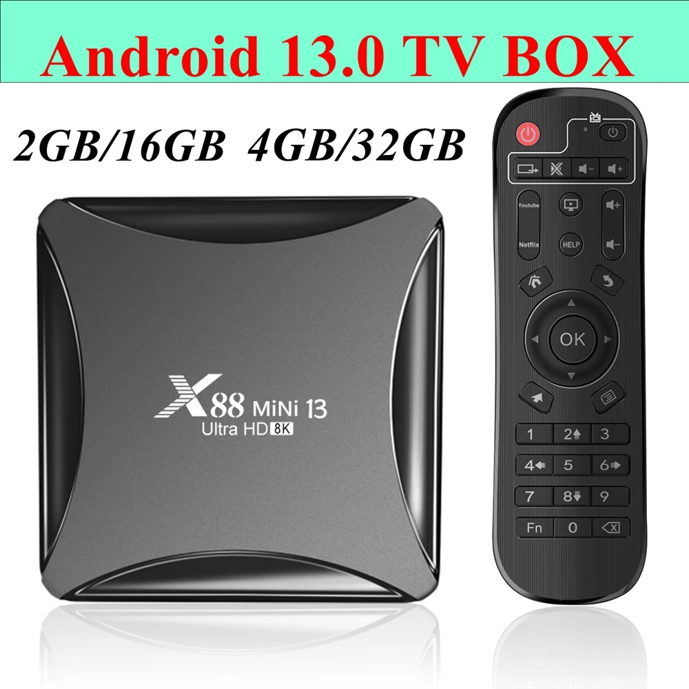 X88 Mini 13 Android 13.0 TV Box RK3528 Quad Core 2G/16G 4G/32G 2.4G 5G Dual WIFI H.265 8K UHD Youtube Smart Media Player