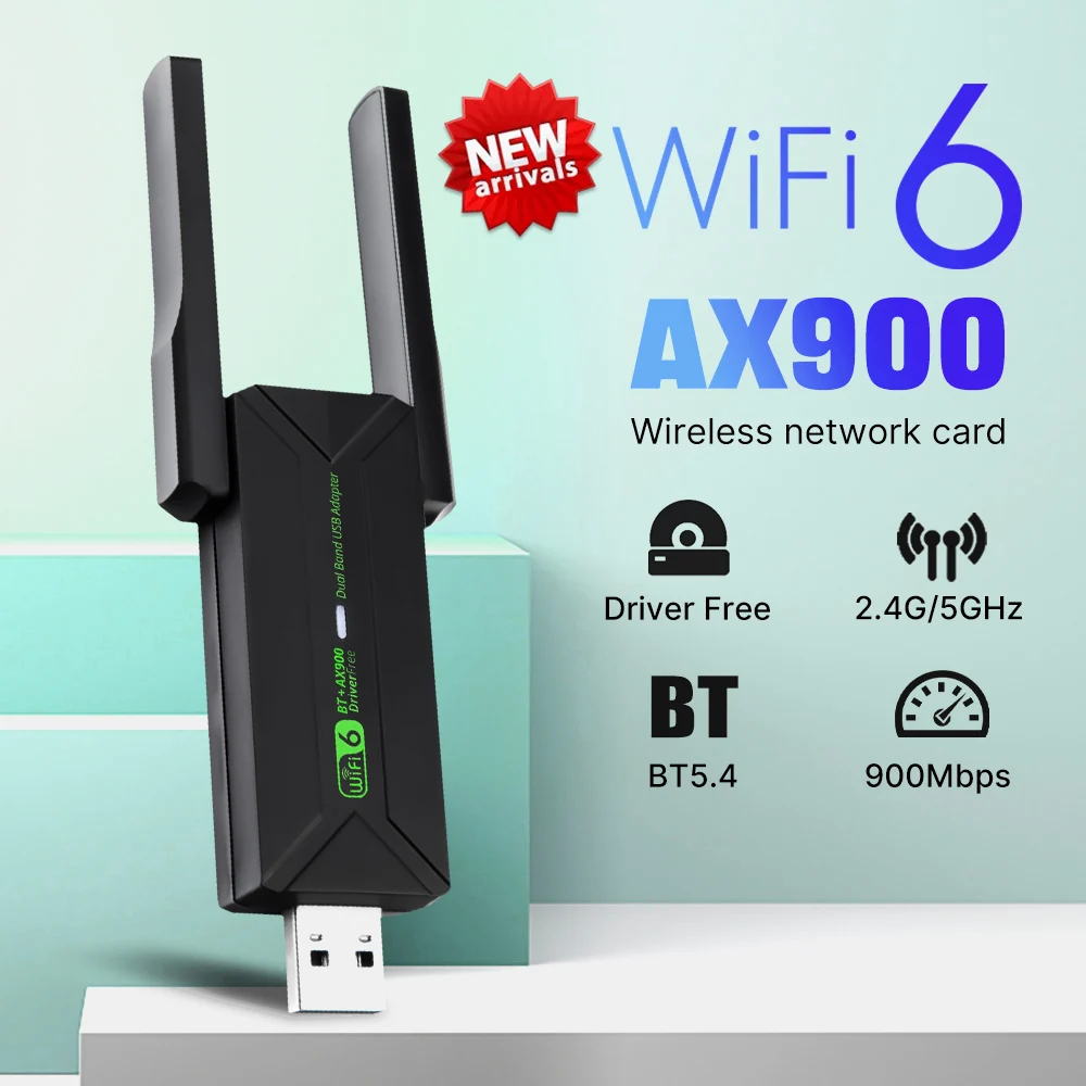 USB WiFi 6 AX900 Bluetooth 5.4 WiFi Adapter Wireless Network Card 2.4G&5GHz Wi-Fi Receive USB For PC/Laptop Win10/11 Driver Free