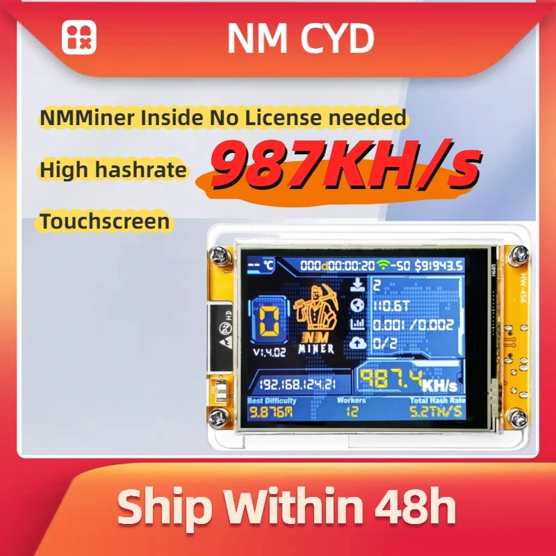 NMMiner Hashrate 987KH/s Lucky Miner for computer nerd 2.8 inch Solo Lottery Bitcoin Smart Display Crypto ESP32-2432S028R DROOM