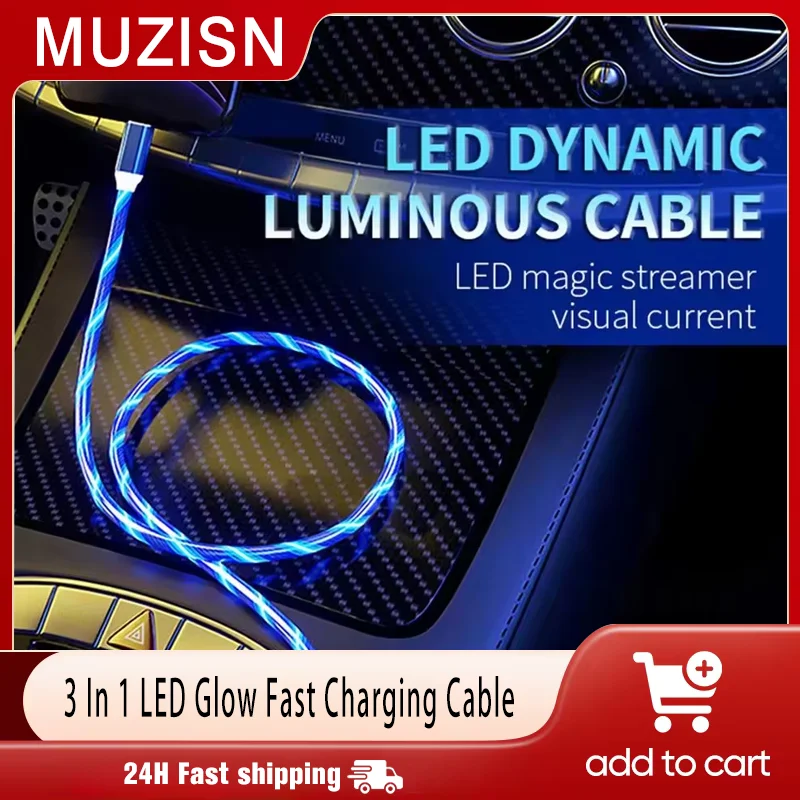 3 In 1 LED Glow Fast Charging Cable 3A High-Speed Charging Micro USB Type-C Multi-Brand Compatible Fast Charging Luminous
