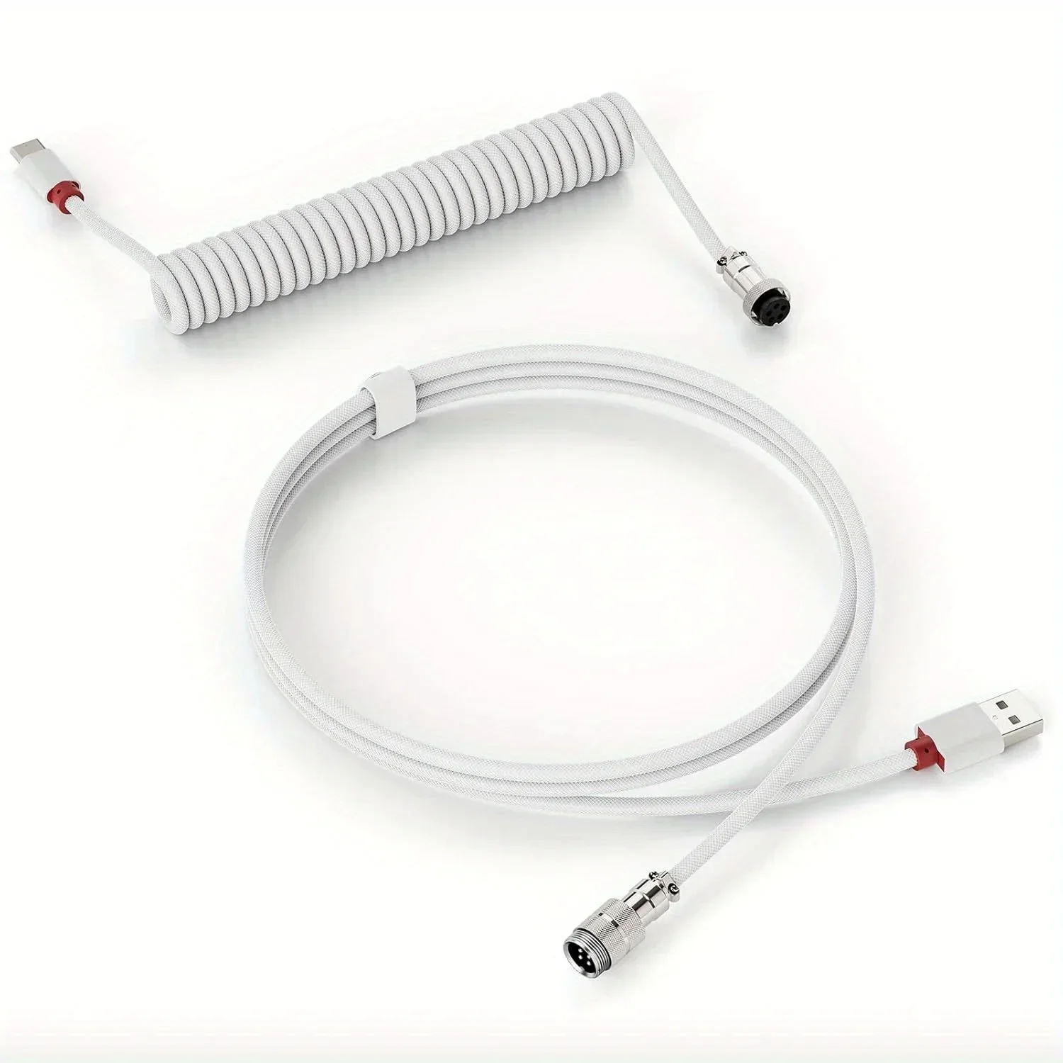 70inch/1.8m USB C to USB A Coiled Keyboard Cable, Detachable Metal Aviator Braided Enclosure, Double-Sleeved Nylon Wire