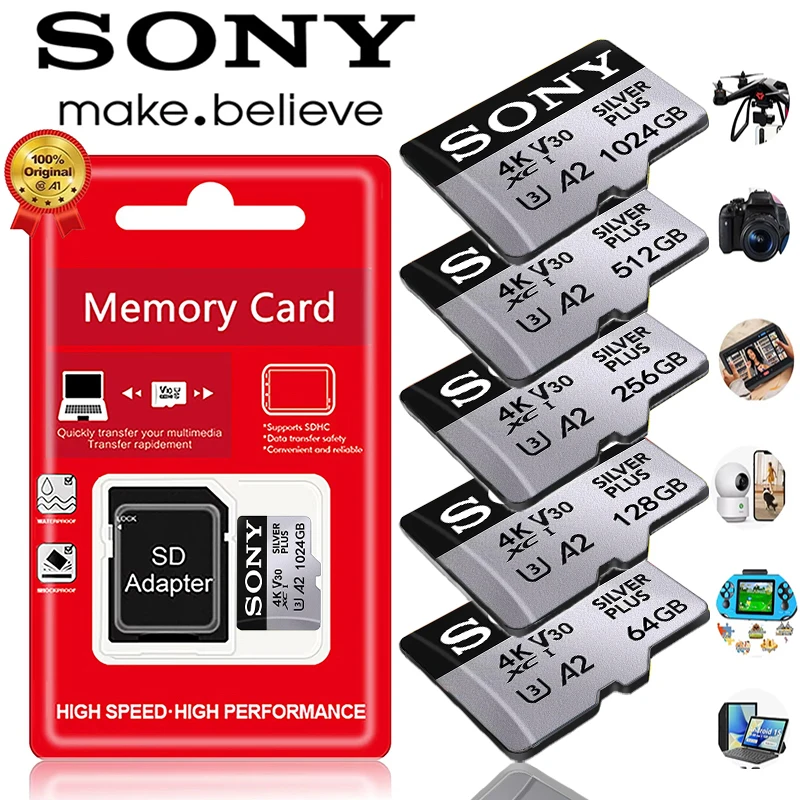 Sony 1TB 512GB Memory Card High Speed C10 SD Card 128GB 256GB 64GB U3 A2 Flash Memory Card Micro Tarjeta SD For Phone