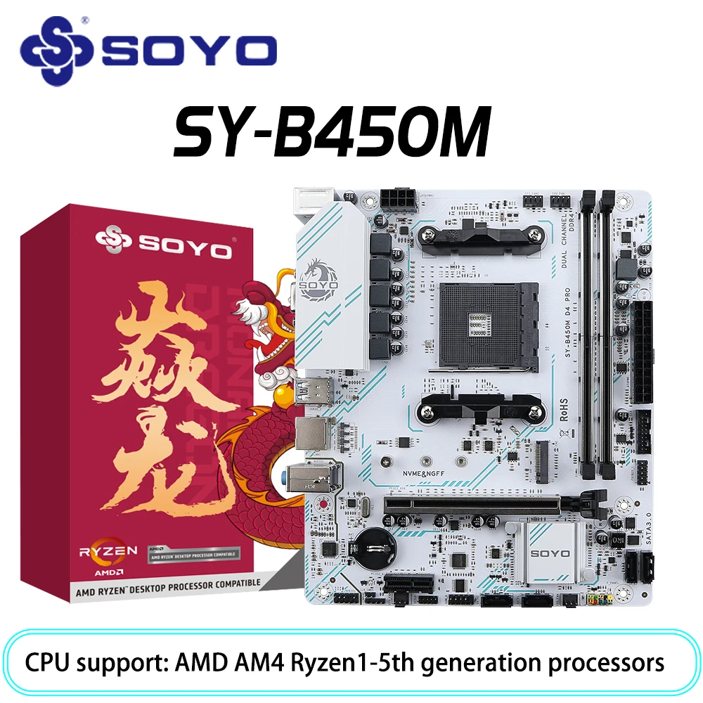 SOYO New AMD B450M Motherboard Dual-channel DDR4 Memory AM4 Motherboard PCI-E 3.0 NVME (supports Ryzen 1000-5000 5600 5600G CPU)