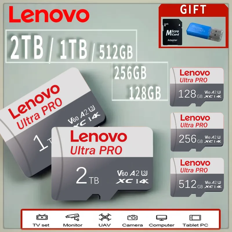 Lenovo 2TB A2 1TB Micro SD Card High Speed Memory Card 512GB 128GB MicroSD U3 TF Flash Card for Xiaomi Phone Camera table PC  Read more