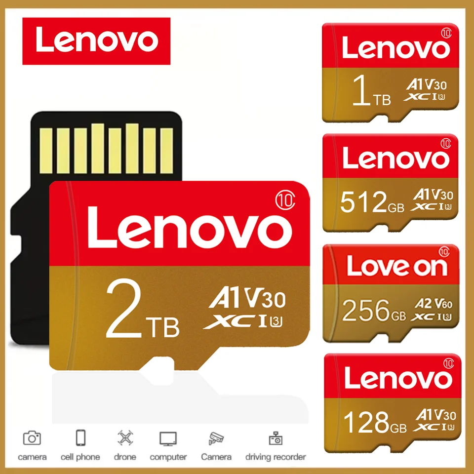 Lenovo 2TB 1TB High Speed SD Card 512GB 128GB Micro TF Memory Card 4K Video Storage Android Phone Drone Gaming Travel Tech