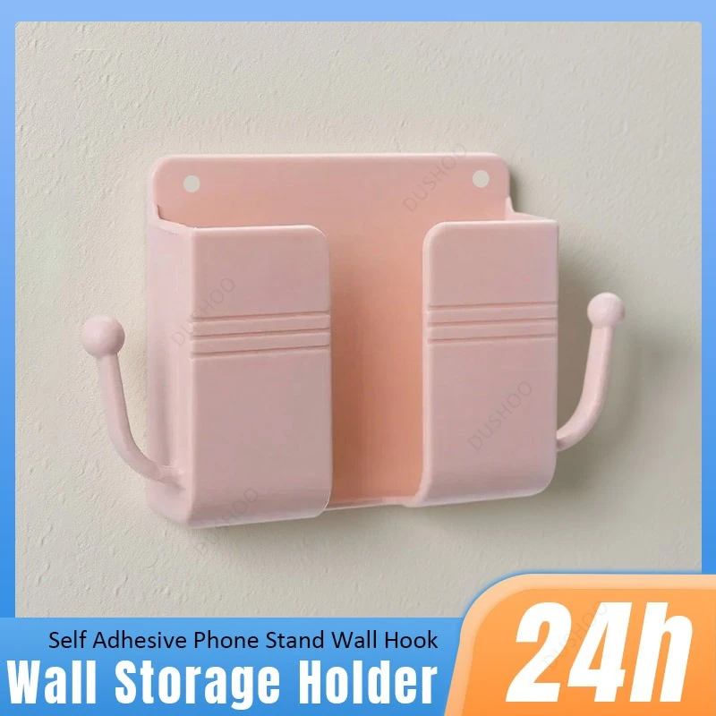 Wall Mount Phone Holder Self-Adhesive Wall Organizer Storage Box Plastic Charging Phone Stand Bracket for Bedroom Living Room