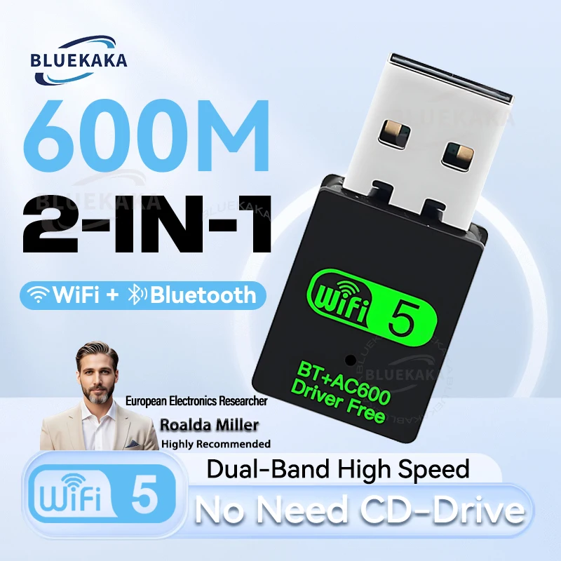 USB WiFi Bluetooth Adapter 600Mbps Dual Band 2.4Ghz 5Ghz Mini Wireless Network External Receiver 2 IN 1 For PC Laptop Desktop  Read more