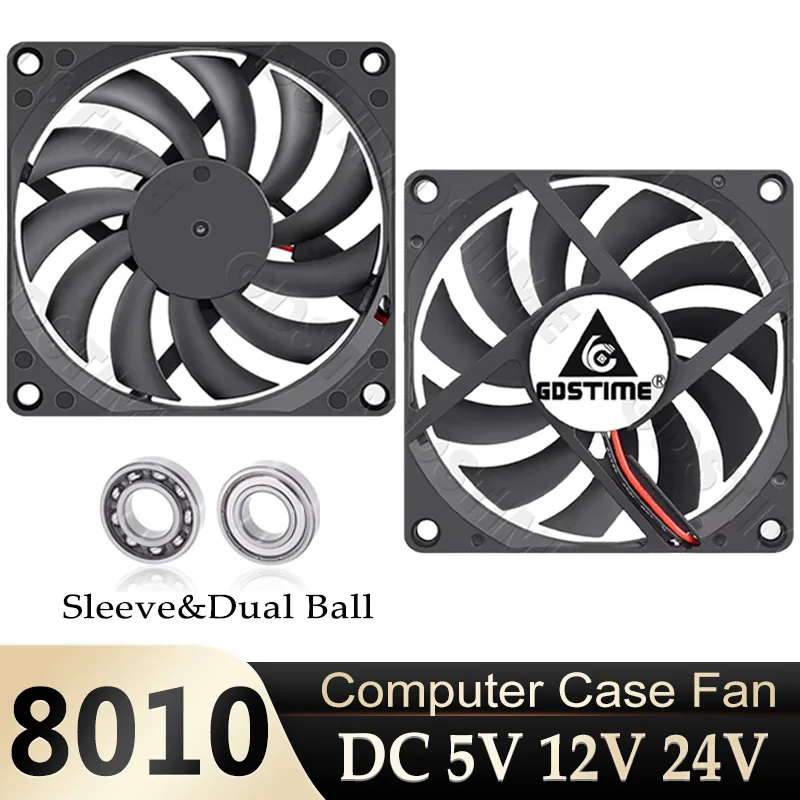 Gdstime 80mm Computer Case Fan DC 5V 12V 24V Sleeve/Ball Bearing PC Fan USB/2PIN/3PIN 80x80x10mm 8010 Brushless Cooling Cooler