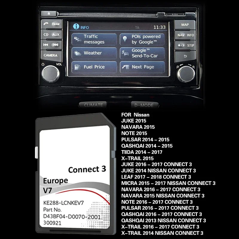 Connect3 V7 Sat Nav Update GPS 16GB Car Map SD Memory Flash Card EUROPE UK Spain