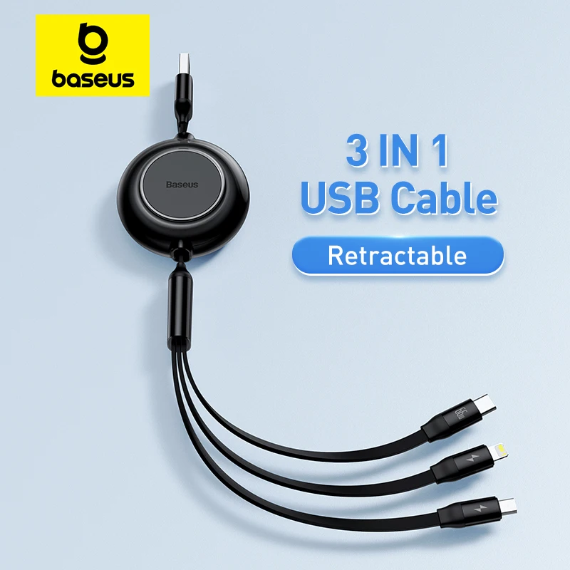 Baseus 3 IN 1 USB Charge Cable for iPhone 13 12 Micro USB Type C Cable Retractable Charging Cable For iPhone X 8 Samsung