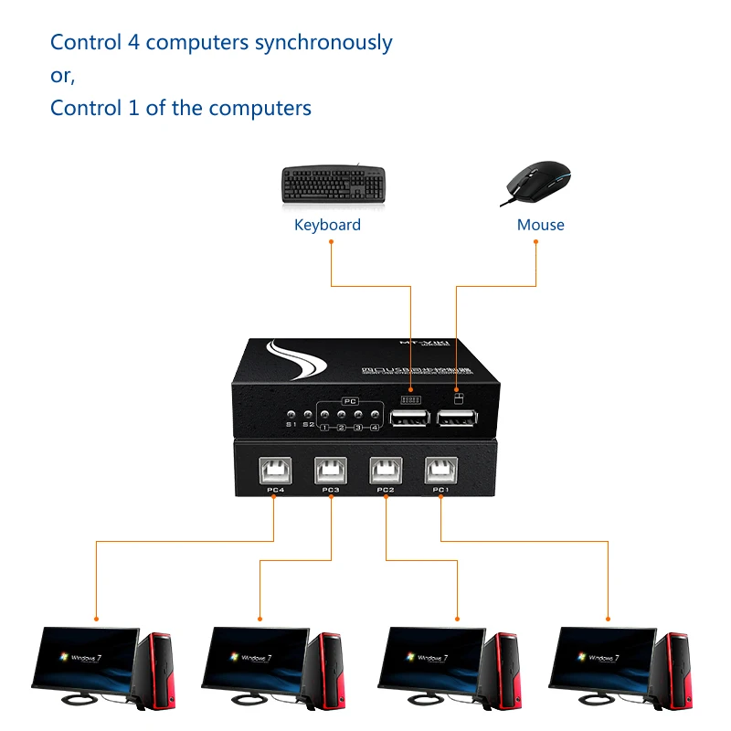MT-VIKI 4-port USB KM Switch Keyboard & Mouse Synchronizer Move Mouse Roaming without Borders MT-KM104-U