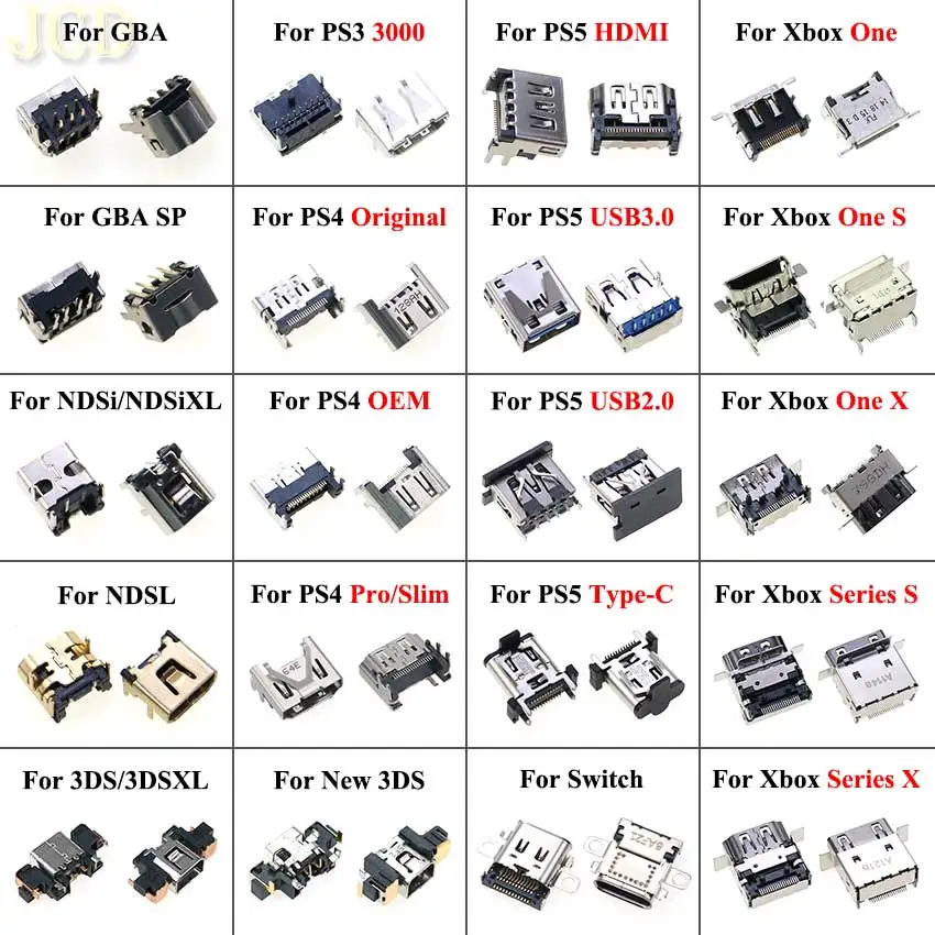 1x HDMI-compatible Charging Port For PS3 PS4 Pro Xbox One Series S X USB2.0/3.0 Type-C Power Jack Socket Connector For P5 Switch