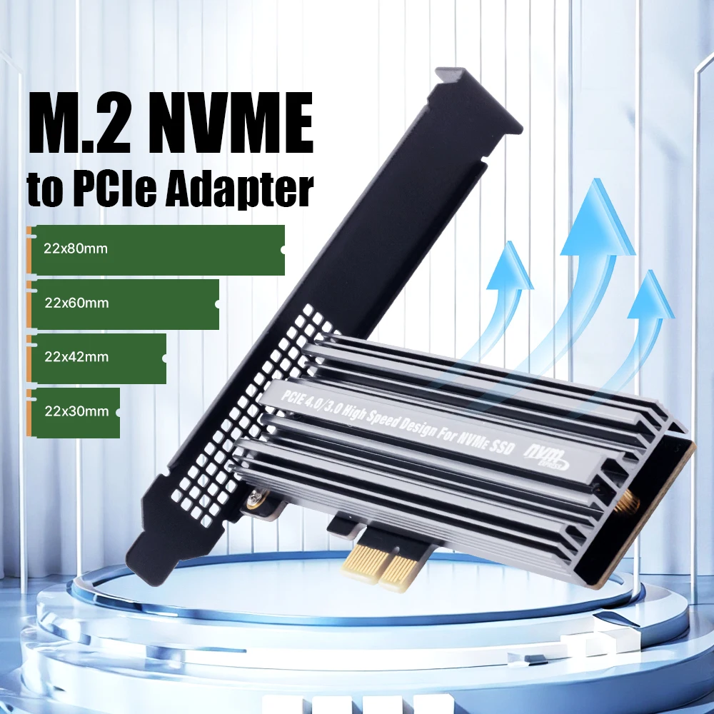 M.2 NVMe SSD to PCIe 4.0 x1 Adapter with Aluminum Heat Sink, High-Speed Expansion Card for 2280/2260/2242 SSDs