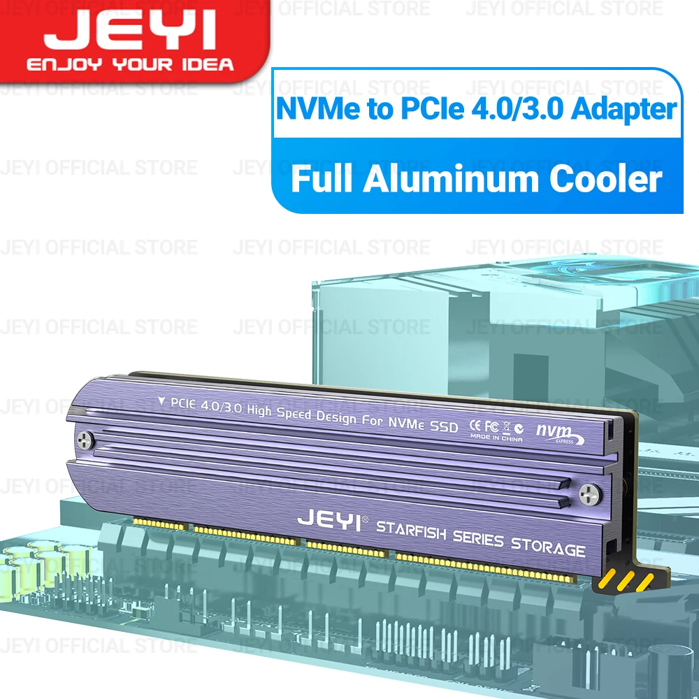 JEYI M.2 NVME to PCIe 4.0 3.0 Adapter With Aluminum SSD Heatsink, NVMe 64Gbps Gen4 PCIE X4 X8 X16 Expansion Card for Desktop