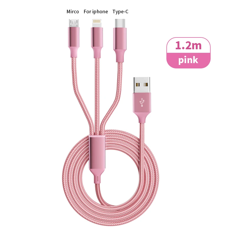 3 In 1 Pink Fast Charging USB cable Type C Usb Micro For Iphone Samsung Huawei Xiaomi Multi Port Multiple Charging Wire Line