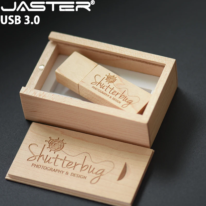 JASTER Wooden High Speed USB 3.0 Flash Drives 128GB Free Custom Logo Pen Drive Walnut Gift Box Creative Business Storage Stick