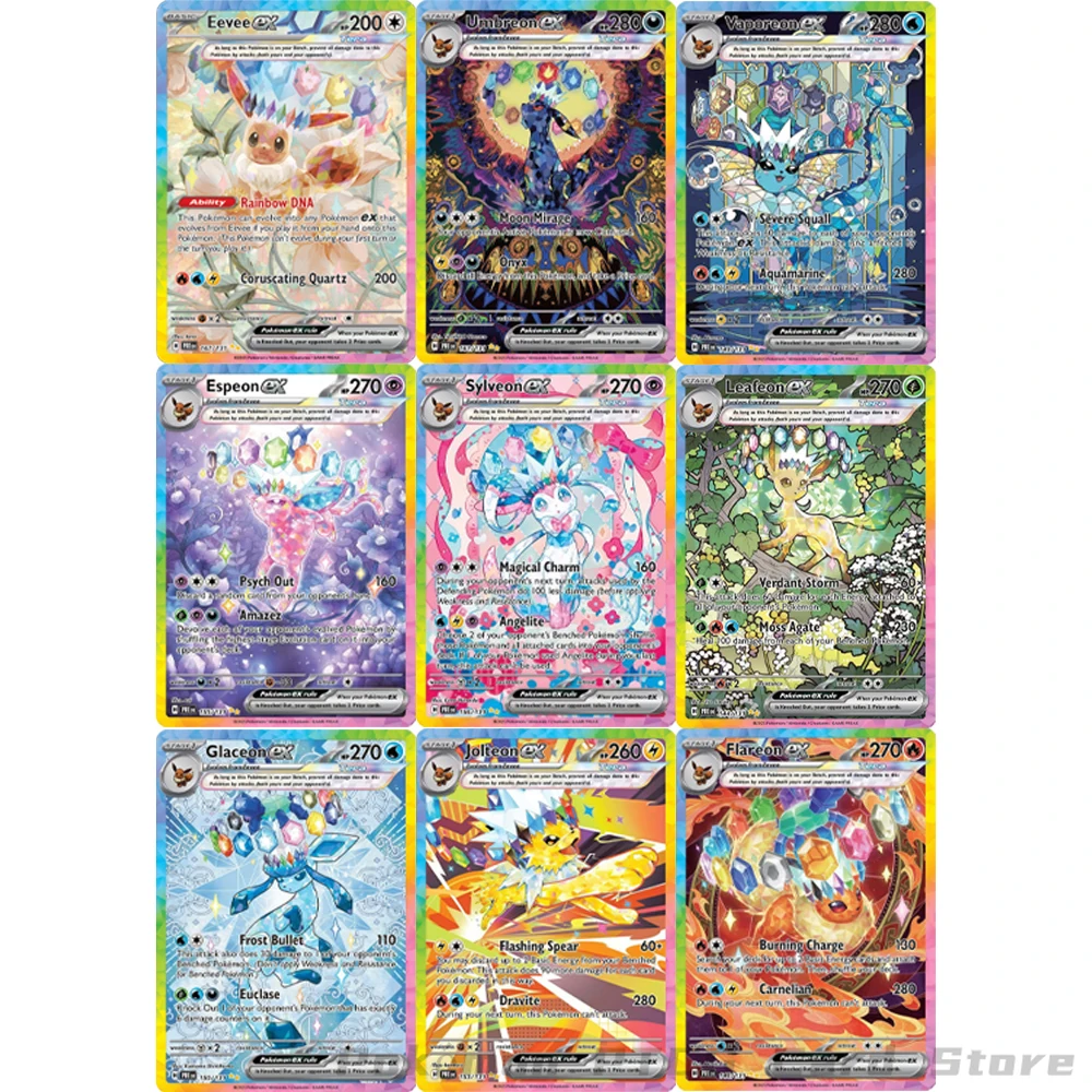 9Pcs Pokemon Eeveelution EX Cards English Sylveon Umbreon Espeon Pokemon Collection PTCG Cards Trading Battles Perfect Gift
