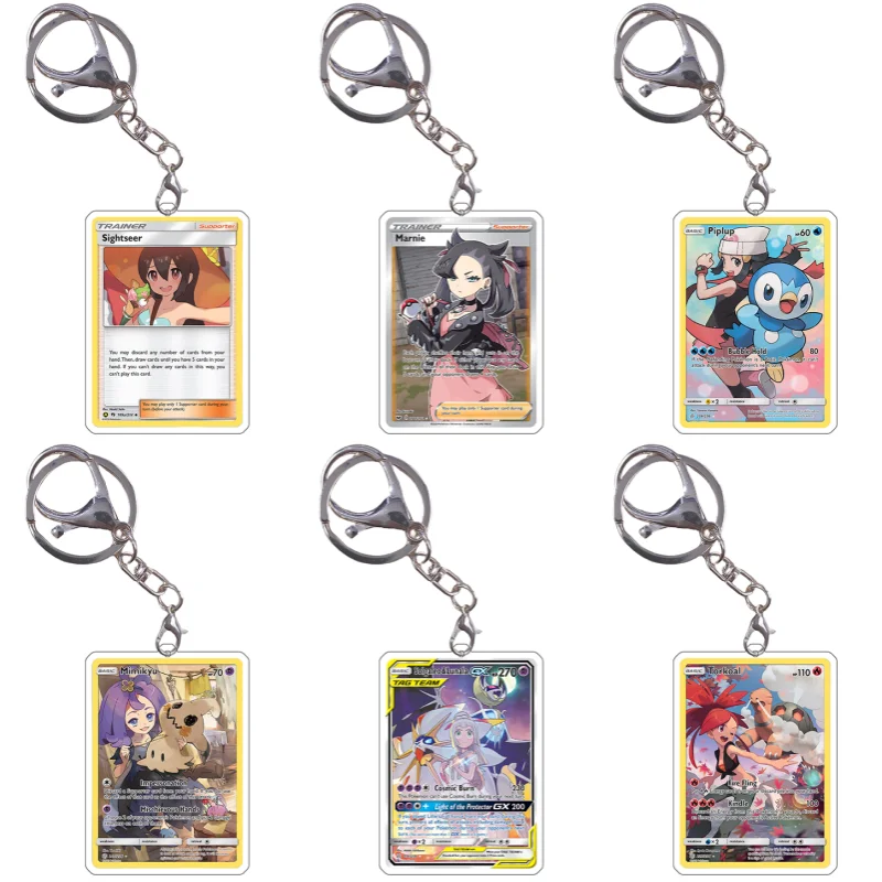 Pokemon Keychain Cards Style Slurpuff Sylveon Lapras Snorlax Eevee GX Anime Game Characters Self Made Acrylic Pendant Decoration