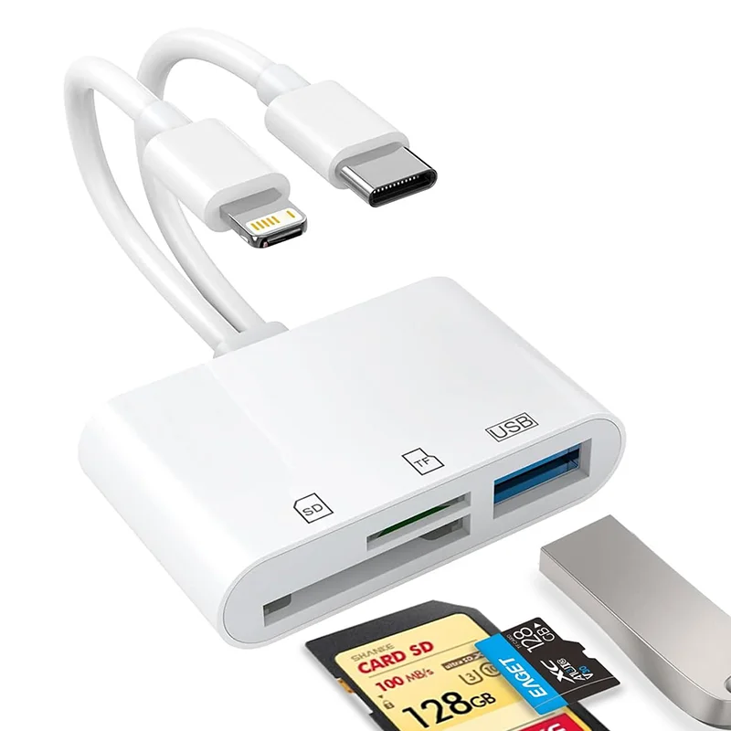 1 PC 5-in-1 memory card reader, USB adapter and SD card reader for iPhone/iPad, supportsd/Micro SD/SDHC/SDXC/MMC