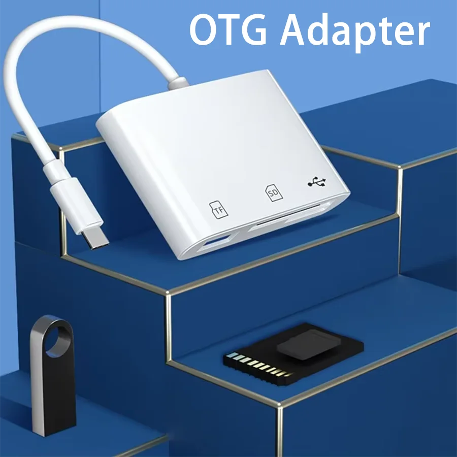 White Three in One Multifunctional OTG Card Reader Type-C 2.0 To TF/SD/USB Compatible with Huawei Android USB Flash Drive Tablet