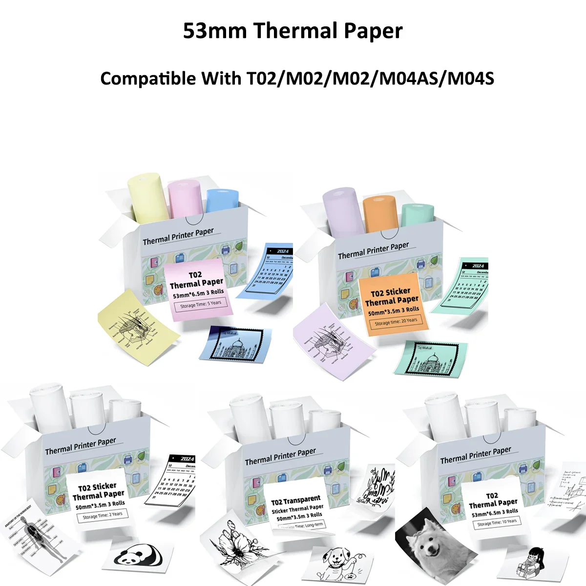 53mm Thermal Paper Sticker For Phomemo/Memoking M02/T02/M04AS/M04S Mini Printer for Journal Photo Text Notes