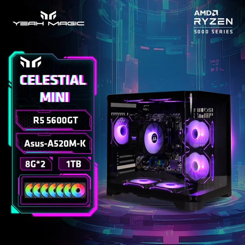 YEAH MAGIC Gaming Desktop AMD Ryzen 5 5600GT 3.9GHz 16GB(8G*2) DDR4 3200 1T NVME SSD ARGB 7 Fans Win 11 Home Gamer Desktop WIFI6  Read more
