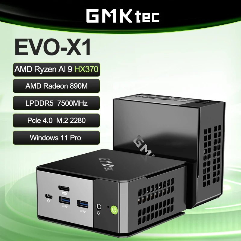 GMKtec Mini PC EVO-X1 Ryzen Al 9 HX 370 MINI PC Win11 Pro LPDDR5X 7500MHz 32GB 1TB PCIe4.0 M.2 SSD Wifi6 BT5.2 Desktop Gaming PC  Read more