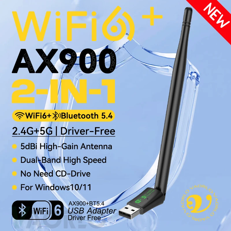 AX900 WiFi6 USB Adapter Bluetooth 5.4 Dual Band 2.4G&5GHz 2 in 1 Dongle Wireless Network Wlan Receiver For Win10/11 Driver Free  Read more