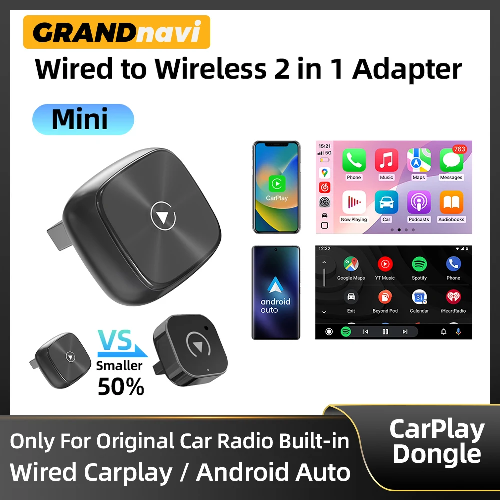 2 in 1 Wireless CarPlay Android Auto Adapter Smart USB Dongle Auto Connect Plug & Play for iPhone and Android Factory Wired Cars