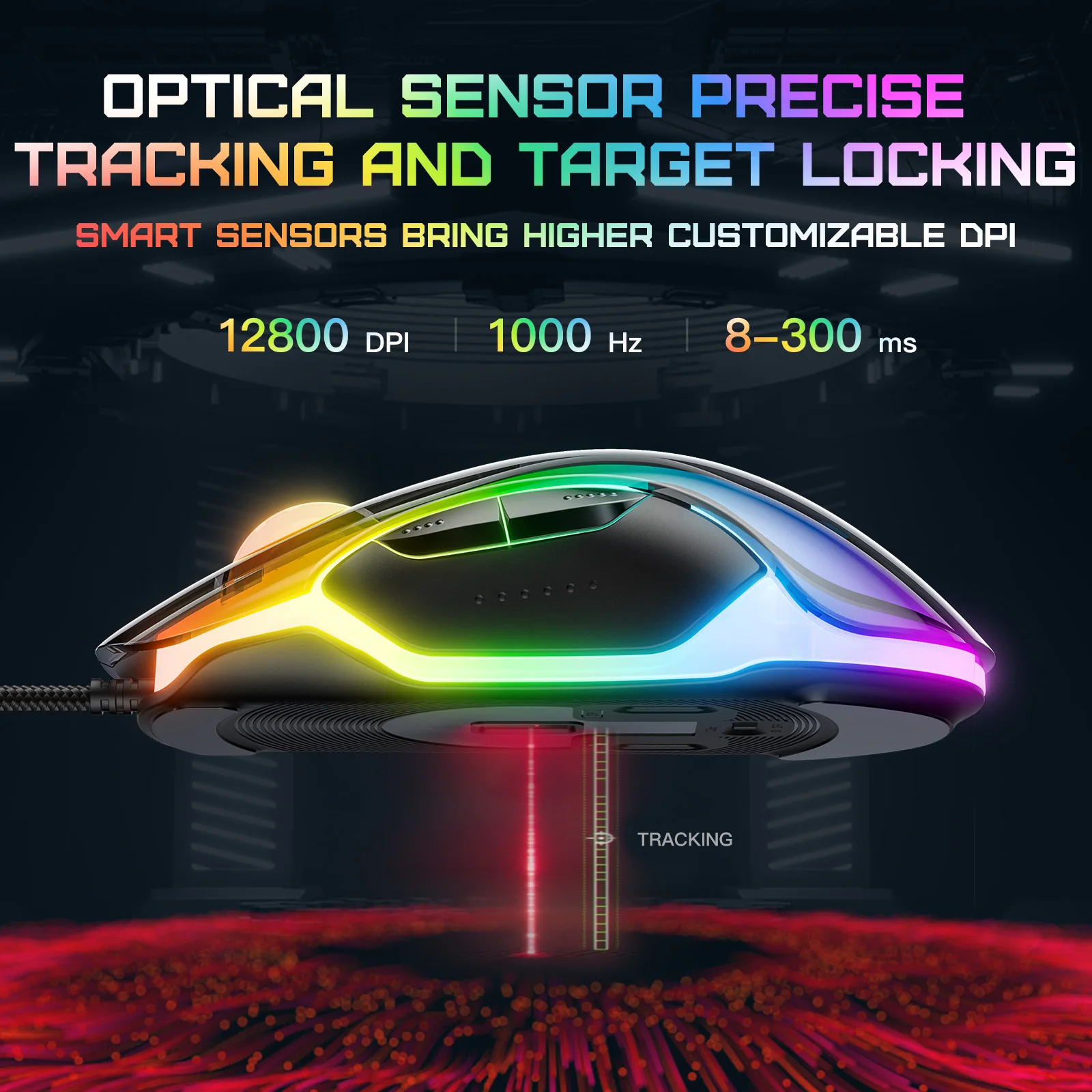ONIKUMA 2024 New Phantom RGB Gaming Mouse 7-Speed Adjustable DPI Dual Haptic Scroll Wheel