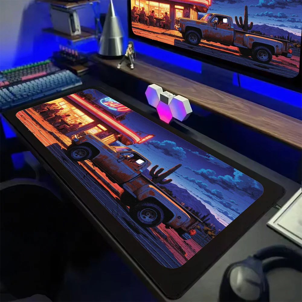 Neon Diner Glow mouse pad: Weathered Truck Under Twilight, Radiating Vintage Americana Roadside Charm for Your Desk  Read more